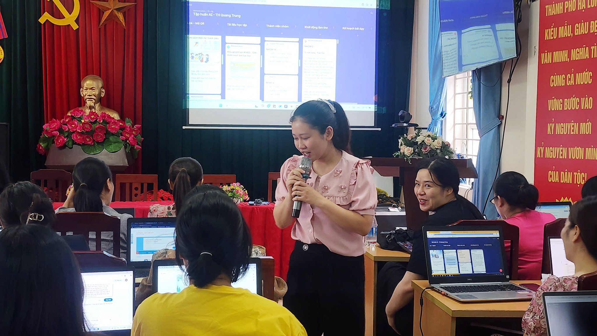 hằm từng bước thực hiện chuyển đổi số trong ngành giáo dục, cập nhật xu hướng mới và nâng cao chất lượng dạy học, trong hai ngày 29 và 30/7/2025, Trường Tiểu học Quang Trung đã cử giáo viên tham gia lớp tập huấn ứng dụng trí tuệ nhân tạo (AI) trong quản lý và dạy học cấp tiểu học, do Sở Giáo dục và Đào tạo tỉnh Quảng Ninh tổ chức tại Trường THPT Hòn Gai.
